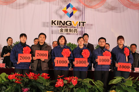 年終歲末,辭舊迎新。 2012年1月15日,寧夏金維制藥有限公司在西廠餐廳圓滿召開了2011年年終總結及表彰大會。會議由王帆副總經(jīng)理主持,高勇董事長、陳德剛總經(jīng)理及全體員工參加。